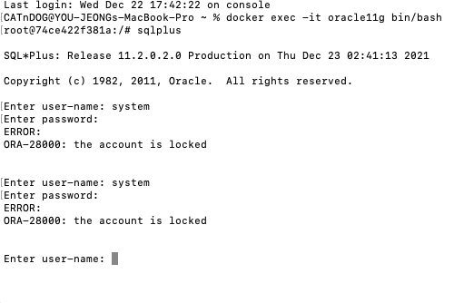 4. SYSTEM으로 들어가려니 account가 lock되어 있다고 함.