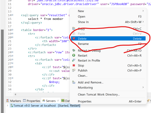 콘솔창 -서버에서 과감히 톰캣을 delete