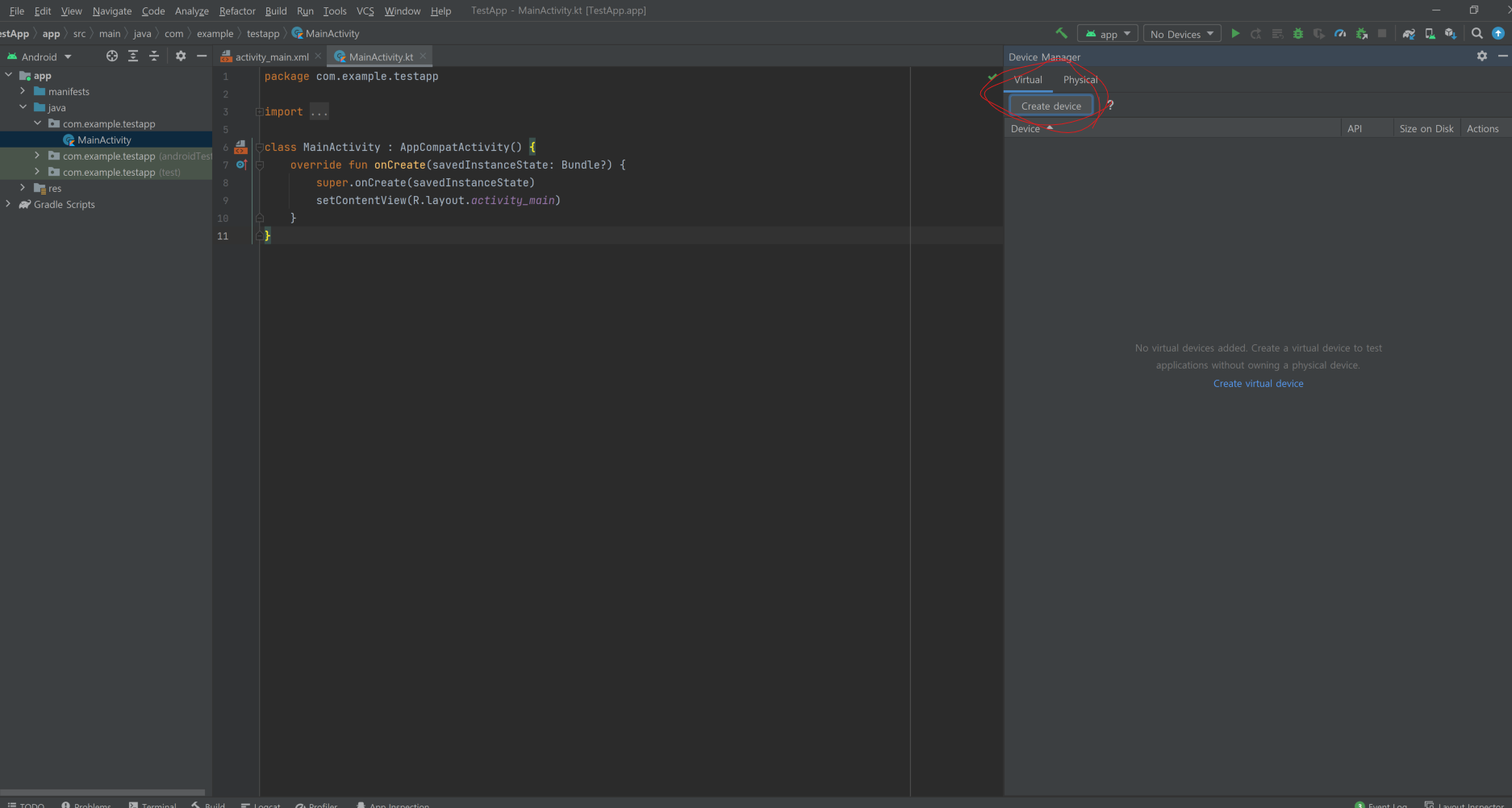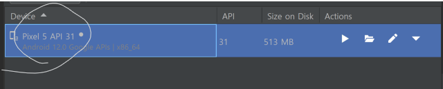 화면 오른쪽을 보면 설치된 AVD를 찾을 수 있다.