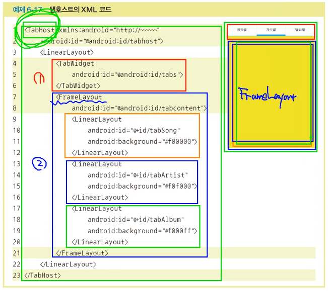 2. Tab Host의 아이디가 android:id="@android:id~~~~~" 라는 점