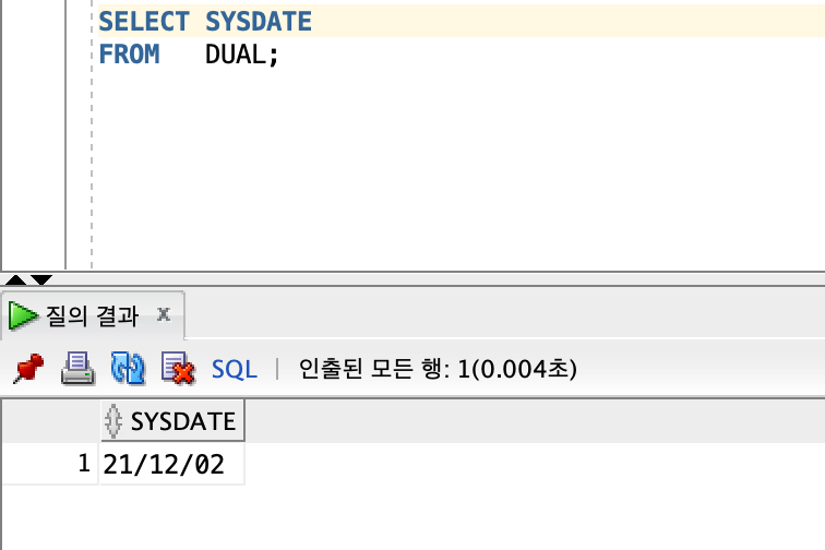 오라클의 SYSTEM 계정 안에 있는 가상 테이블 DUAL을 불러내서 사용한다.