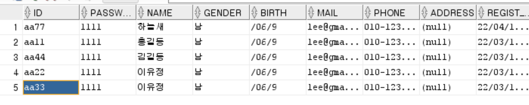 오라클 데이터 베이스에도 잘 들어갔음을 확인!
