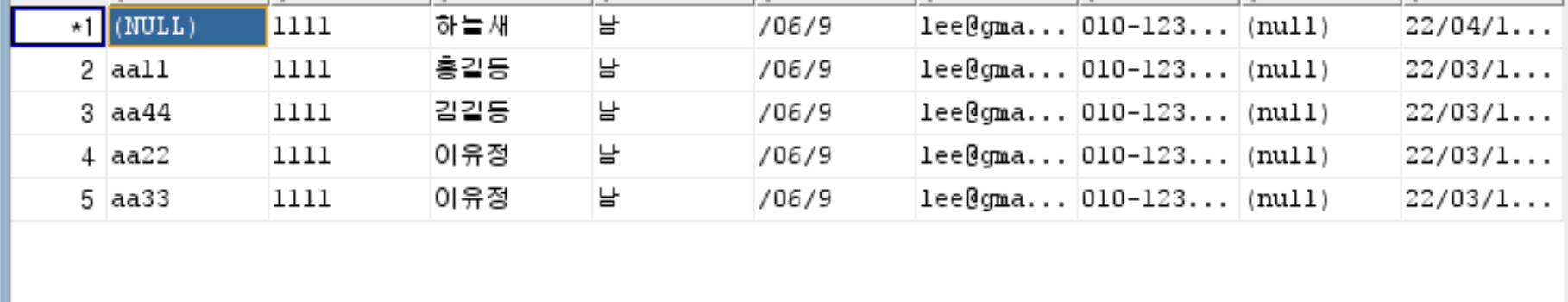 실상은 요따구로 (같은 화면은 아니지만) 아이디만 NULL이 됨